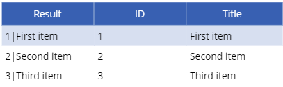 - The AddColumns() function allows us to generate separate columns for our table. But instead of just using the Result from our first Split outcome like we used to determine our Title column, we now need to split that Result on the pipe separator to get both the ID and the Title column: